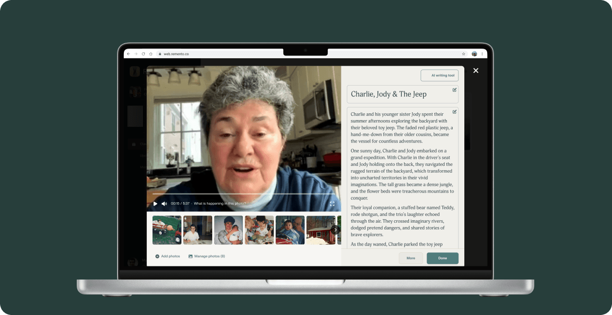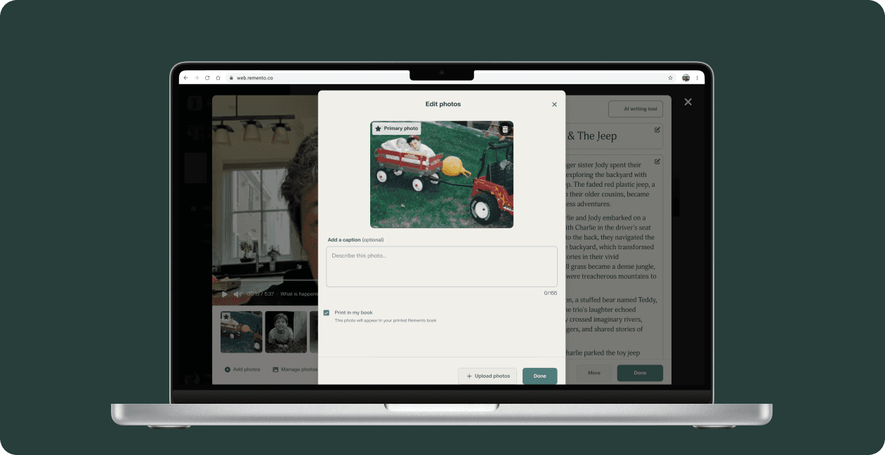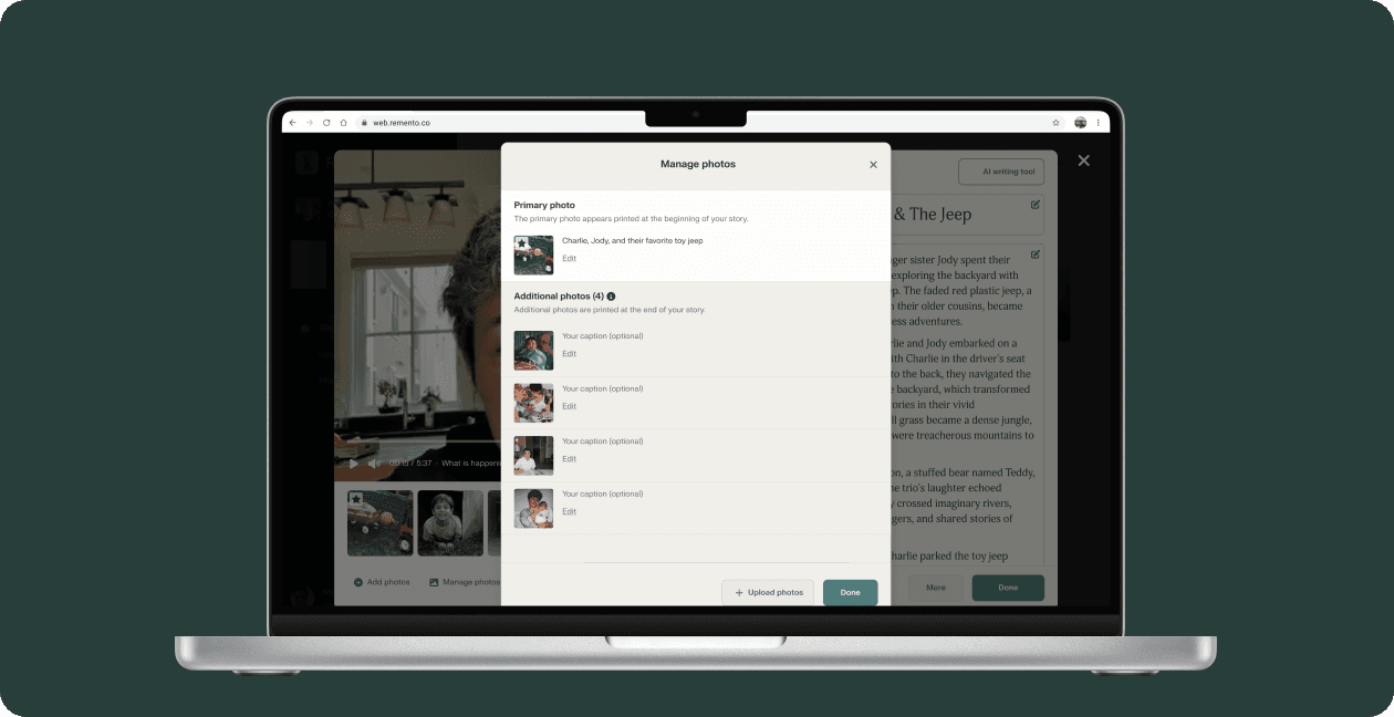 • Use Remento’s photo upload tool