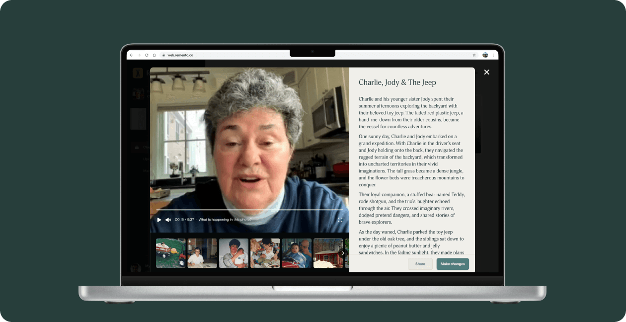 Every story on Remento can have photos added to it after the recording is finished. Simply go to your story, and start by selecting “Make changes”.