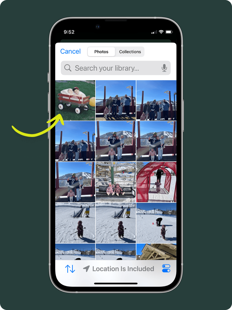 You can make changes to your photos (like cropping) before selecting to upload the photos to your story.