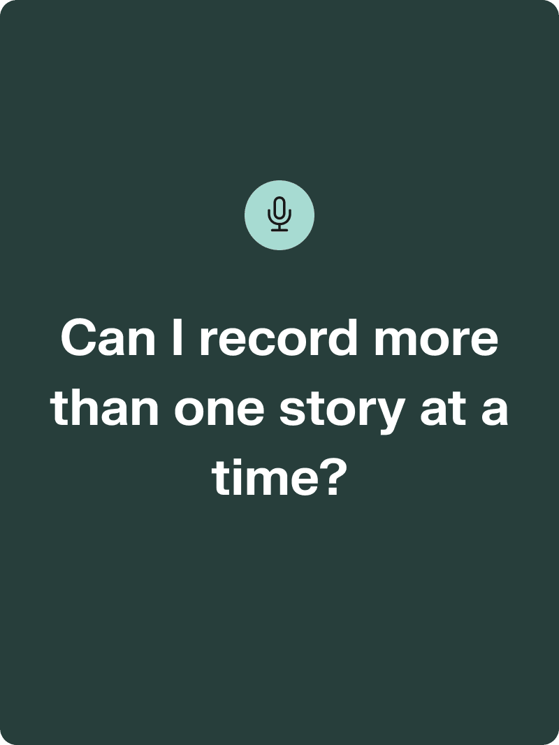 Yes, you can record as many stories as you would like in one sitting. After you record the prompt we send, you can select to record another story.