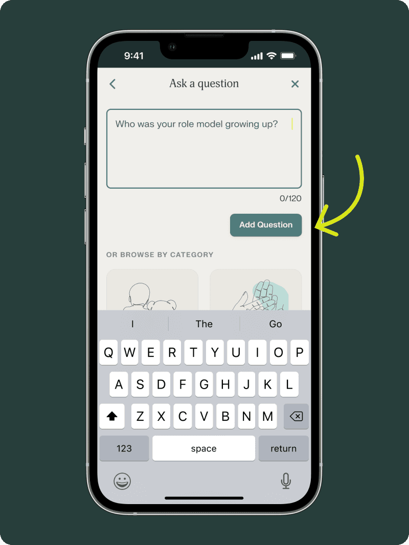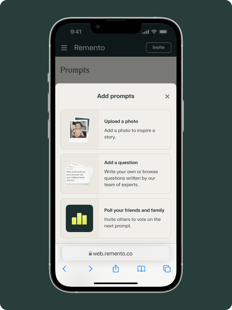 The prompts sent from Remento can be written by you or anyone invited to the project. This is a great option if you have a topic you know you want in the book.
